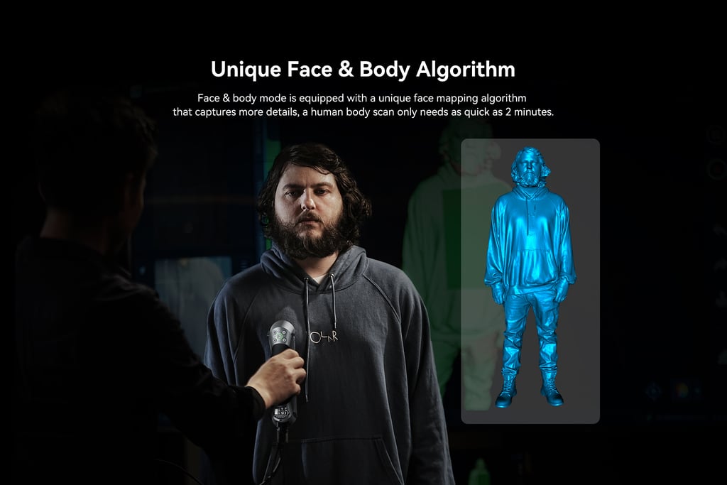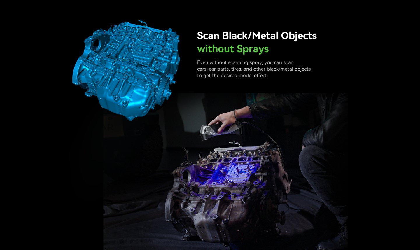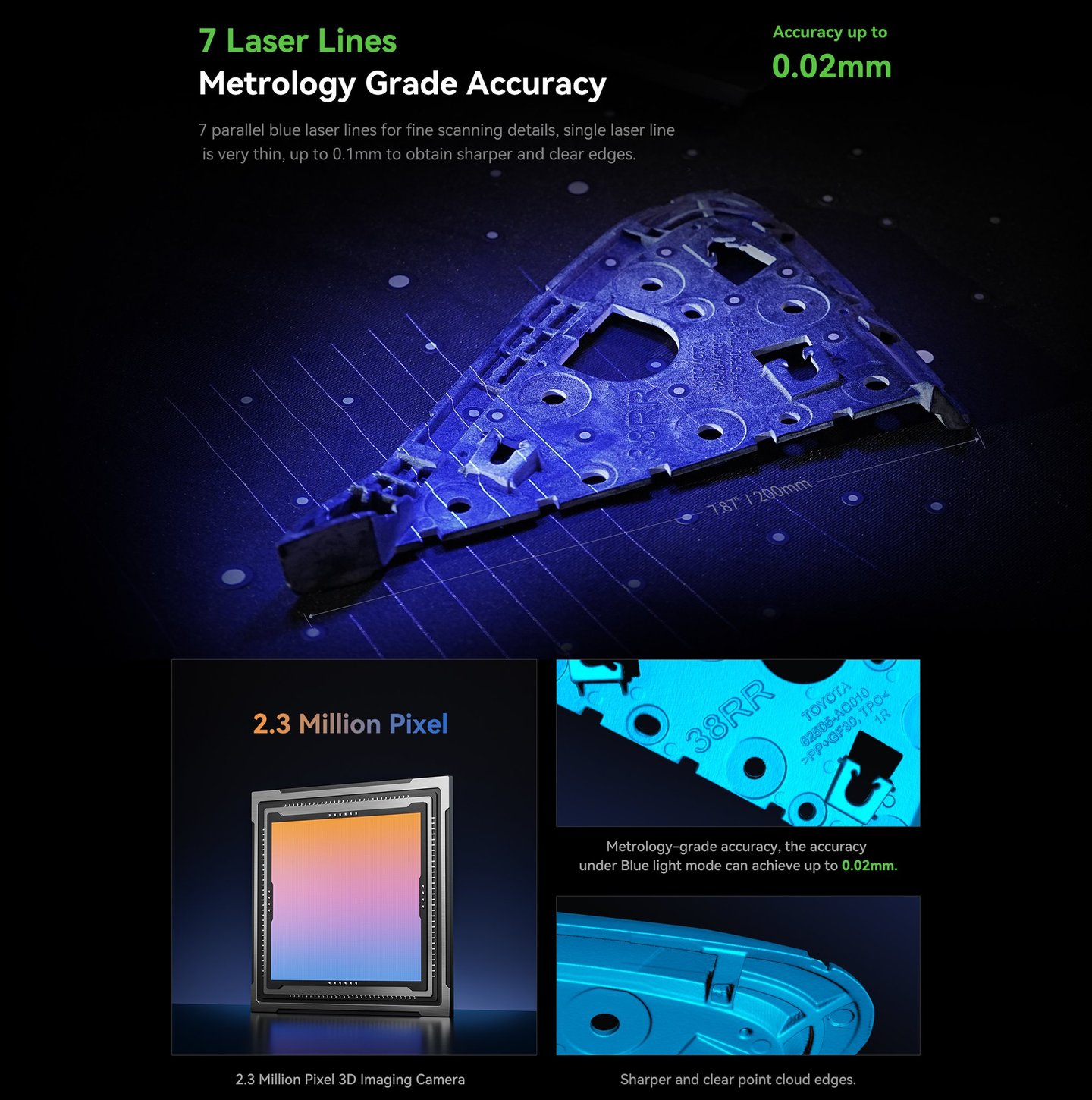 The first Multiple-line Blue Lase Consumer 3D Scanner with Hybrid Blue Laser & NOR, Metrology Grade Accuracy. Reliable Accuracy up to 0.02mm, Objects between 5-2000mm scan