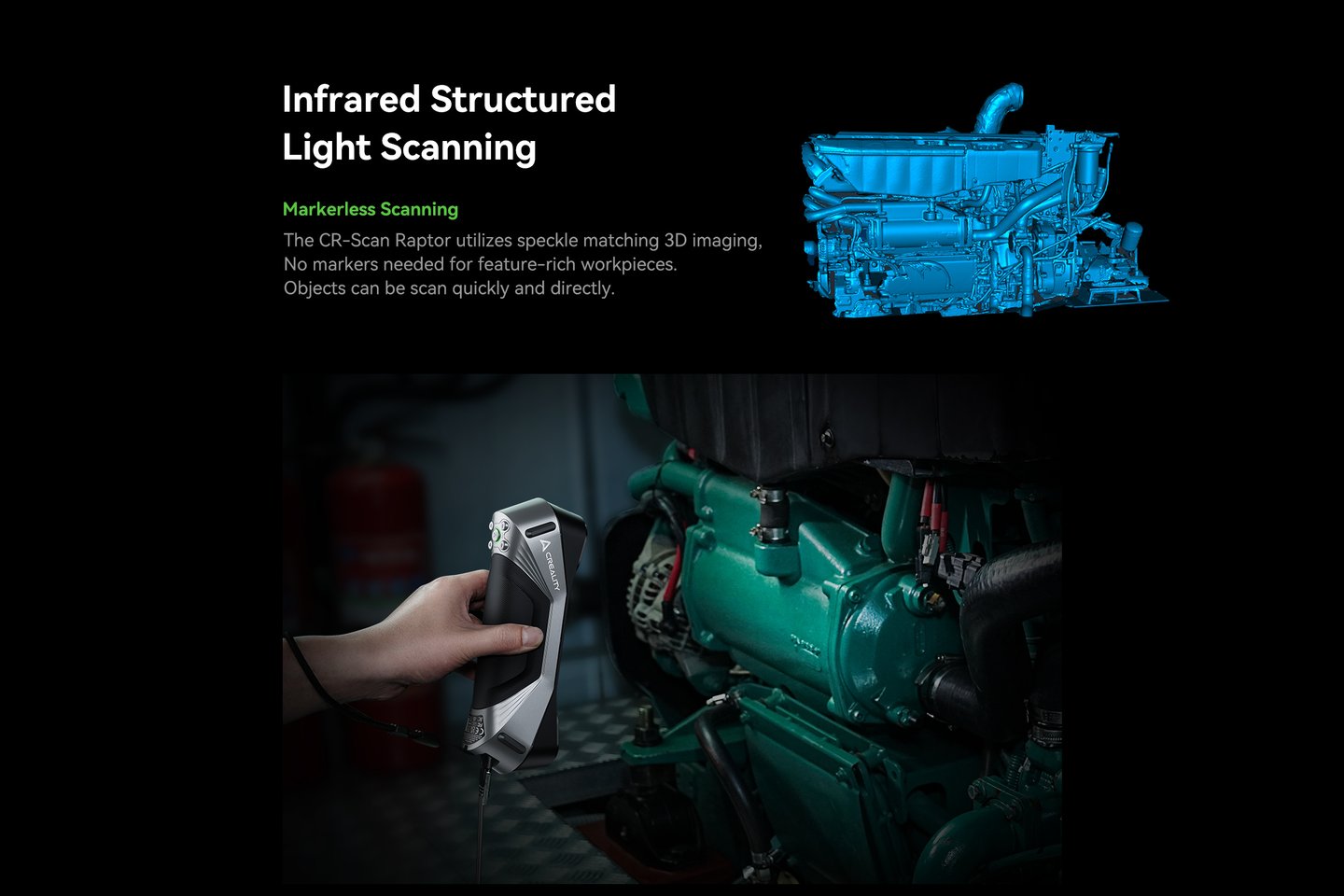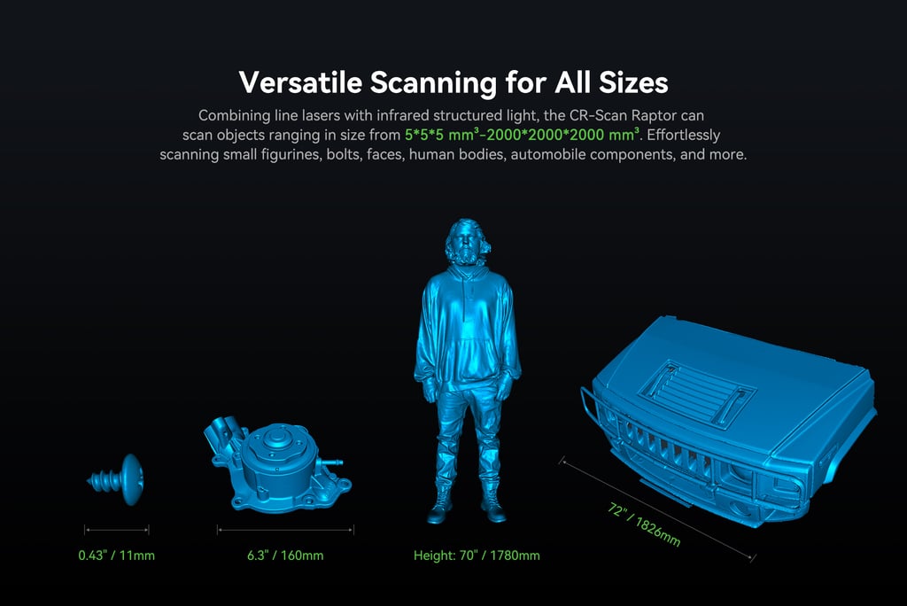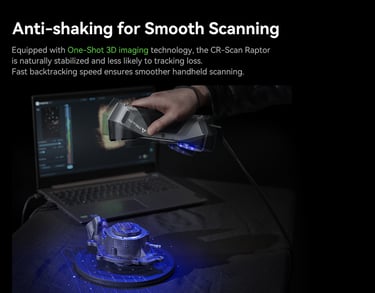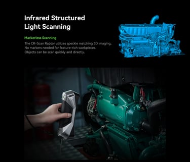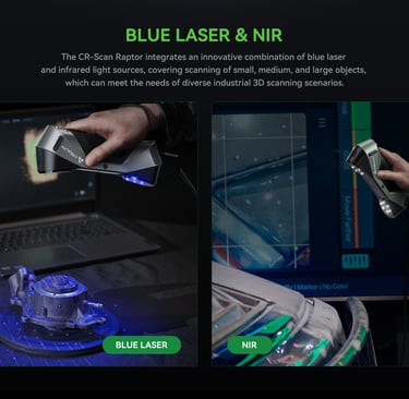 The CR-Scan Raptor integrates an innovative combination of the blue laser and infrared light sources, covering scanning of small, medium and large objects, which can meet the needs of diverse industrial 3D scanning scenarios,